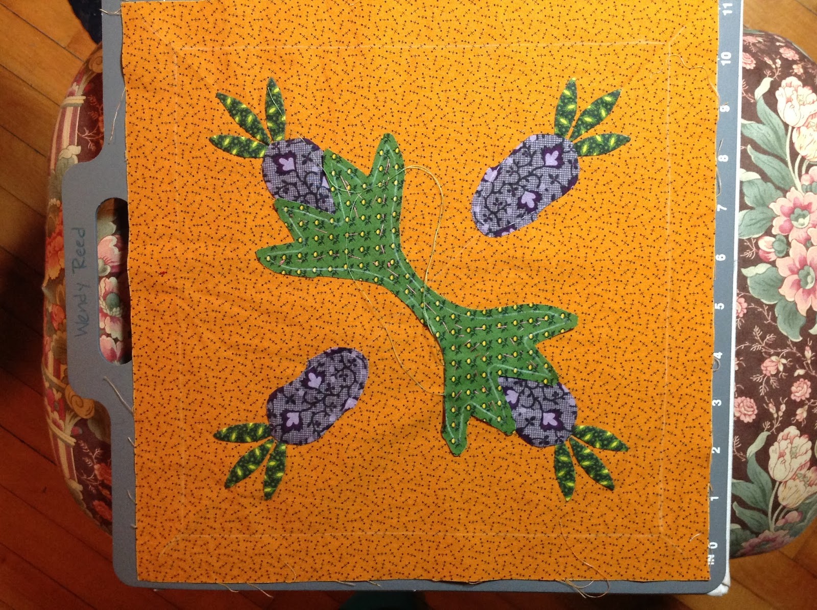 delicious, is too cool a brown for me. I prefer the warm madders. I like the background fabric in this one though.